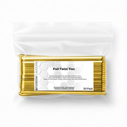 Add a professional finishing touch to your candy packaging with these elegant gold metallic twist ties. Each 50-pack provides secure, decorative closures for lollipop bags, candy pouches, and treat packaging.